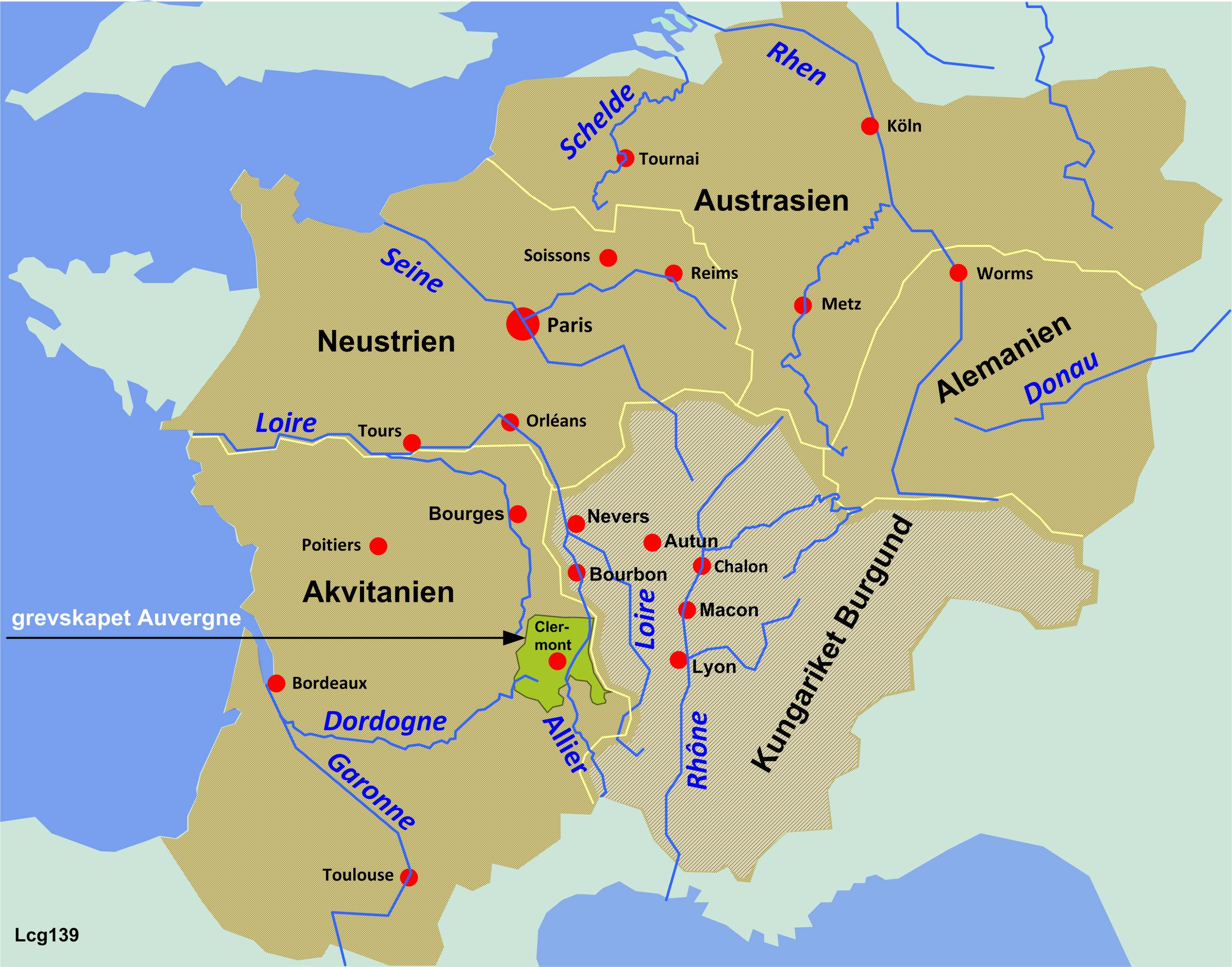 4. Frankerriket, Burgund och grevskapet Auvergne ca år 680