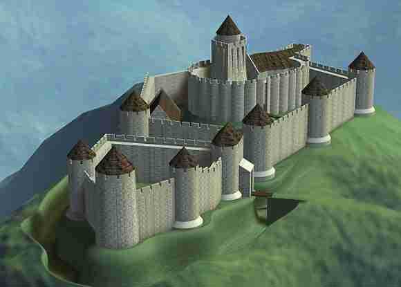 Slottet Chateau Gaillard såsom det såg ut en gång