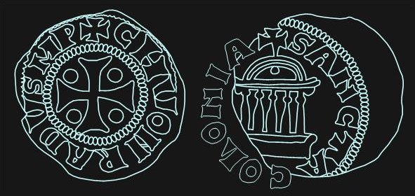 Myntet är med stor sannolikhet präglat år 1036 med Konrad som ensam myntherre. Annars hade ärkebiskopen i Köln rätt att prägla mynt och då framgår både kejsarens och ärkebiskopens namn på mynten. 1036 var dock ett år då det uppstod ett glapp mellan ärkebiskopen Pilgrim och dennes efterträdare Herman II. Detta år präglades mynt i Köln med bara kejsarens namn och titel (MP eller IMP för imperator).