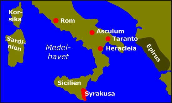 Pyrrhus (319/318-272 f.v.t) var kung över Epirus. Folket i den grekiska staden Taranto bad honom om hjälp med att komma tillrätta med Romarna som hade börjat tränga söderut. Pyrrhus besegrade Romarna under slaget vid Herakleia i södra Italien år 280 f.v.t.