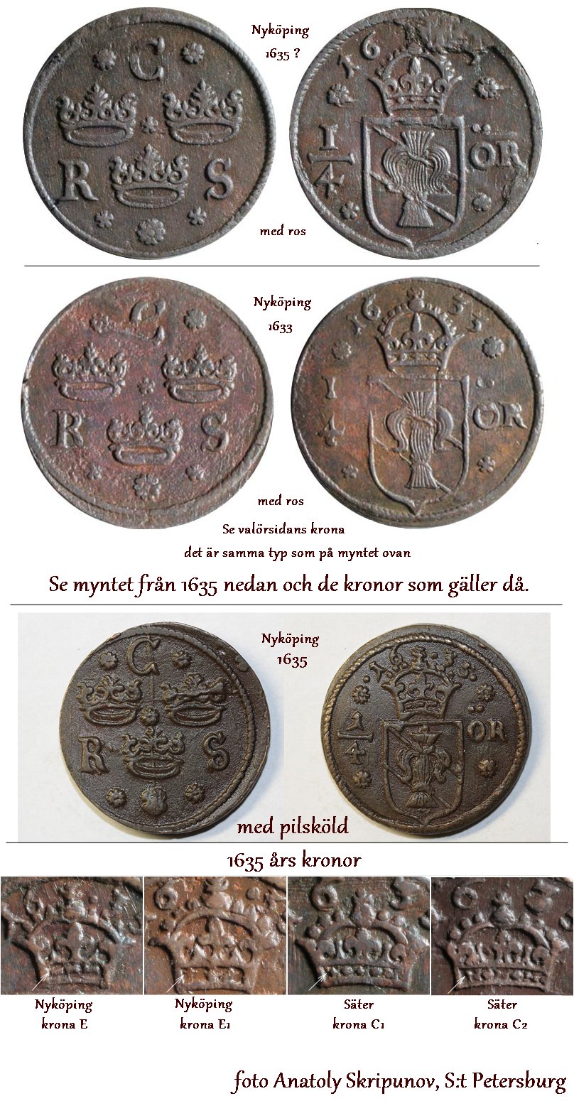 Sanningen är, vilket Ottosson visat, att det är en Kristina-fyrk 1633 med svårtydbart (eller förändrat/förfalskat) årtal. Granskar man kronan på valörsidan är det uppenbart att det inte är en fyrk från 1635. Se följande bilder från Anatoly Skripunovs