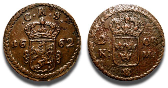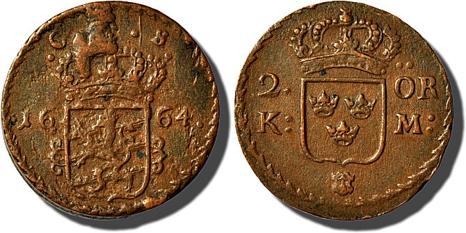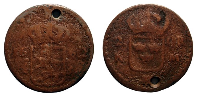 Se nedanstående bild som visar ett mynt som stått emot tidens tand någorlunda väl, men det är inte ett särskilt vackert mynt. Det är präglat med slitna valsar och åtsidans vals var dessutom skadad så att en ful klump uppstod.