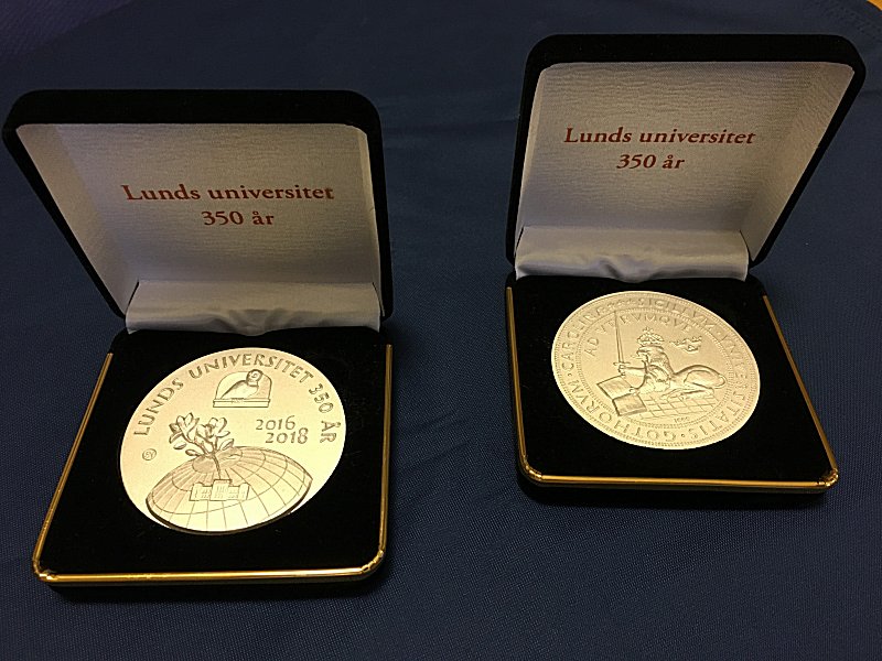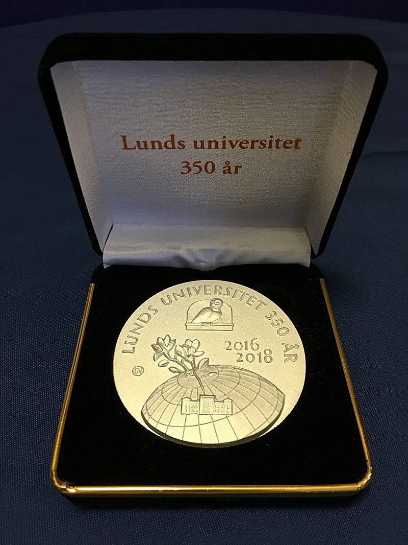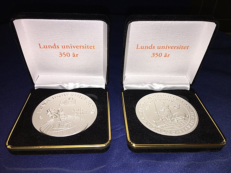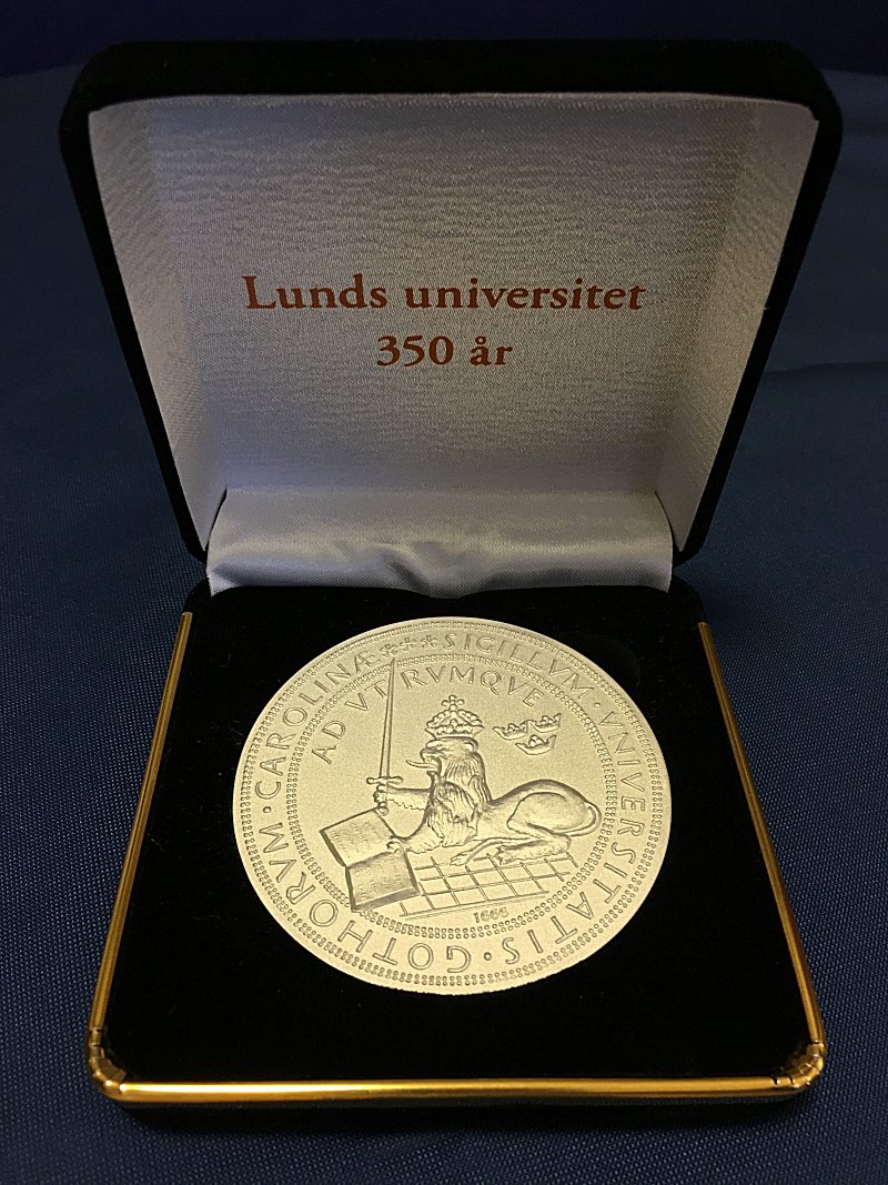 Den universitetsanknutna stiftelsen Ebbe Kocks stiftelse beviljade 2013 en ansökan om att ta fram en jubileumsmedalj i samband med att Lunds universitet fyller 350 år. Lunds universitet gav uppdraget att ta fram medaljen till skulptören och formgivaren Ernst Nordin, som 2012 vann Sveriges Riksbanks tävling om nya mynt från 2016. Medaljerna har producerats av Sporrong, som liksom Lunds universitet grundades 1666.