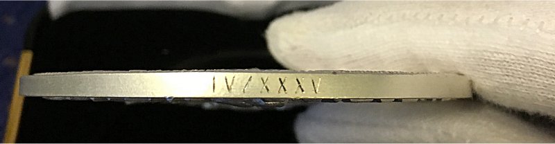 Medaljen är i finsilver (.999), 66 mm i diameter, 4 mm tjock. Medaljnumret är graverat med I/XXXV, II/XXXV osv.