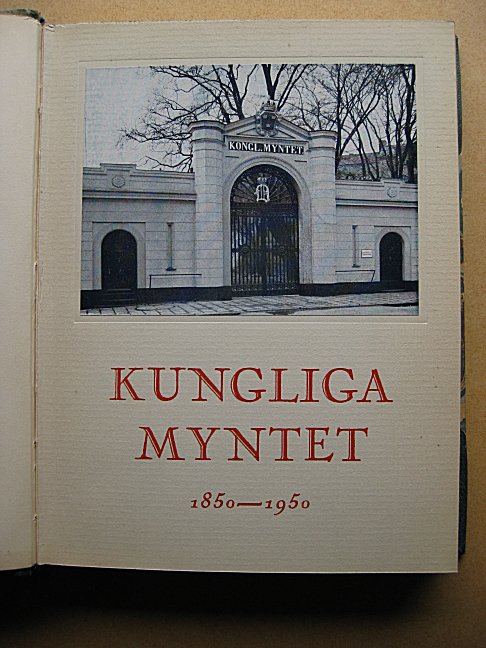 | Omslaget till Kungliga Myntet 1850 − 1950, av Torsten Swensson (red.). Stockholm 1950. |