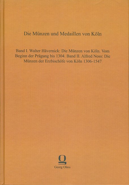 Del två, som tar sig an ärkebiskoparnas mynt i Köln under perioden 1306-1547, skrevs av Alfred Noss 1913 och den är ett värdefullt komplement till Hävernicks arbete.