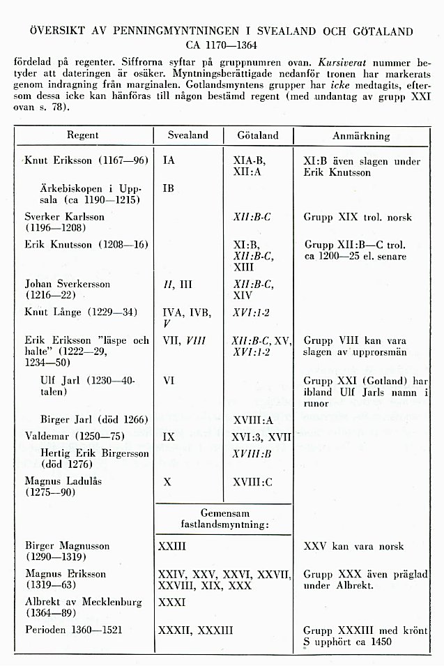 Eftersom både SM-boken (Sveriges mynt 1521−1977) och SB-boken (Sveriges besittningsmynt) presenterats nyligen på denna plats förefaller det naturligt att också presentera Lars O. Lagerqvists "bibel" om vikingatida och medeltida mynt samt om gotländska mynt. Första upplagan utkom från Numismatiska Bokförlaget 1970, och har sedan dess utgjort ett referensverk av liknande betydelse som SM-boken.