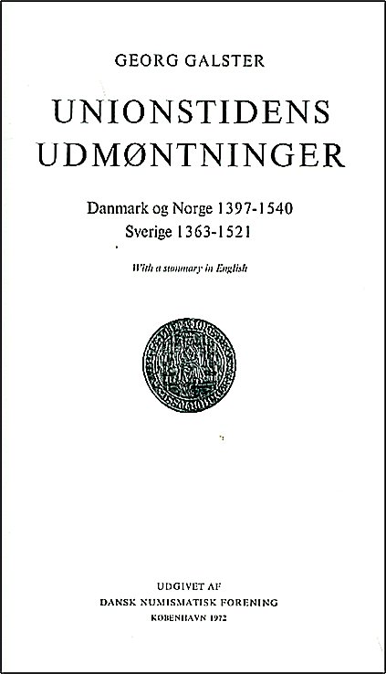 För den som är intresserad av myntningen under Kalmarunionen presenteras här ett gediget bokverk utgivet av Dansk Numismatisk Forening. Boksidorna har ett format som är något större än A4.