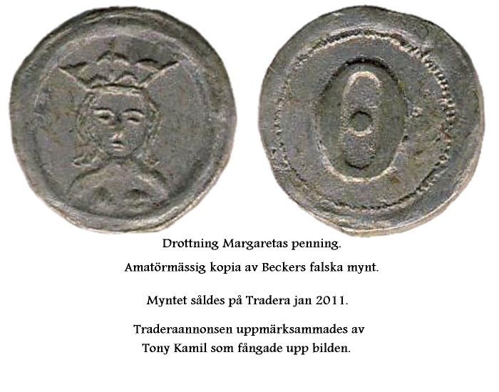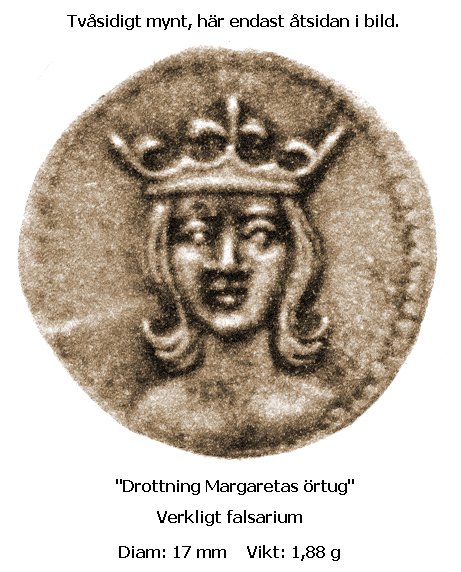 Den viktigaste personen under Kalmarunionen torde väl vara Margareta Valdemarsdotter, men hittills har inget mynt påträffats som är slaget för henne. K W Becker tog därför fram en Margaretapenning som ett fantasimynt med Brenners skiss från 1694 som förlaga. Naturligtvis hör denna penning inte hemma i Galsters bok, men en bild av fantasimyntet kan vi väl kosta på oss här.