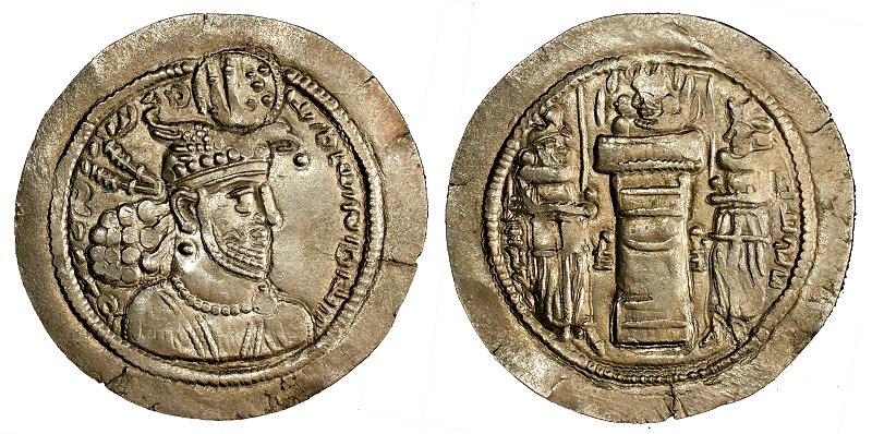 Sasanidernas förste härskare var Ardashir I (226-241 e.Kr.). Han påbörjade en myntning med ett zoroastriskt eldaltare som frånsidesmotiv, ett återkommande frånsidesmotiv på mynten för alla efterföljande sasanidiska härskare, nu med två väktare, en på vardera sida av eldaltaret.
