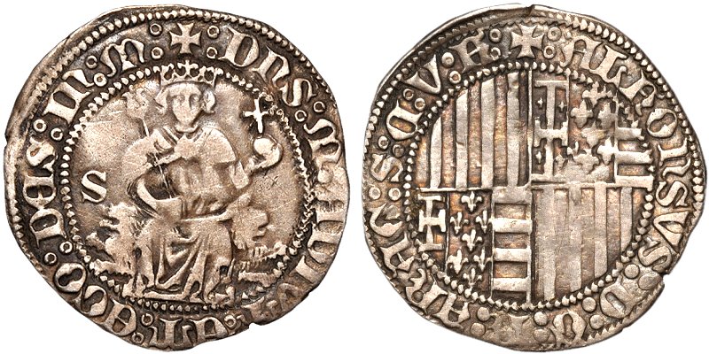 ALFONSVS D[ei] G[ratia] R[ex] ARAG[onie] S[icilie] C[orsica] V[alencie] F[?]