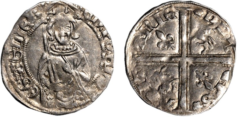 Edward III gav ut anglo-galliska mynt i riklig omfattning. Ingen annan engelsk kung har varit så flitig i det avseendet. Här nöjer vi oss dock med att presentera en Esterlin Guyennois. På engelska skulle man säga Sterling Guyennois. Myntet var avsett för den engelska provinsen Guyennois med Bordeaux som provinshuvudstad.