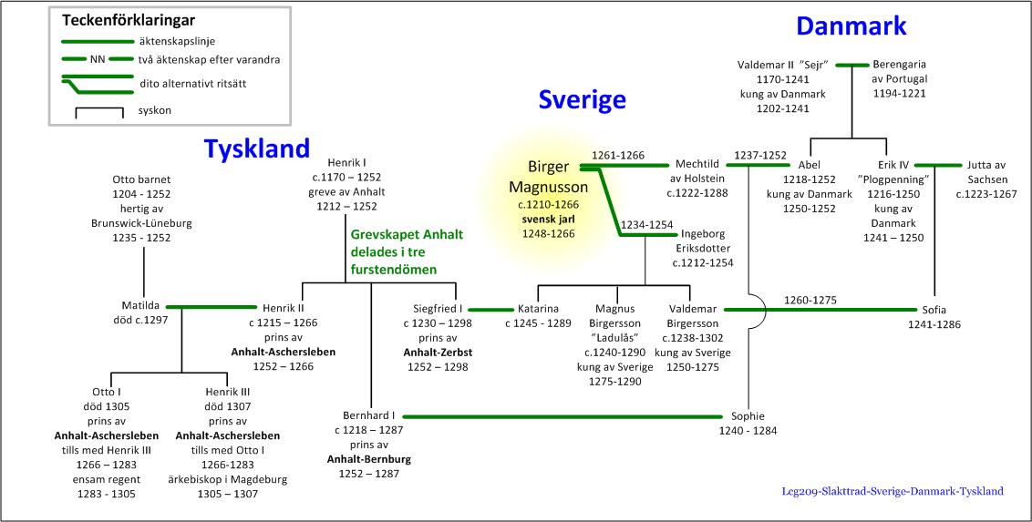 Av diagrammet framgår att det är sju personer som var furstar i Anhalt under andra halvan av 1200-talet.