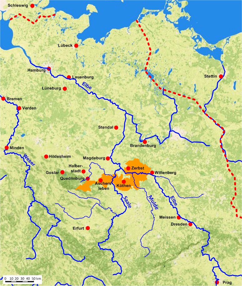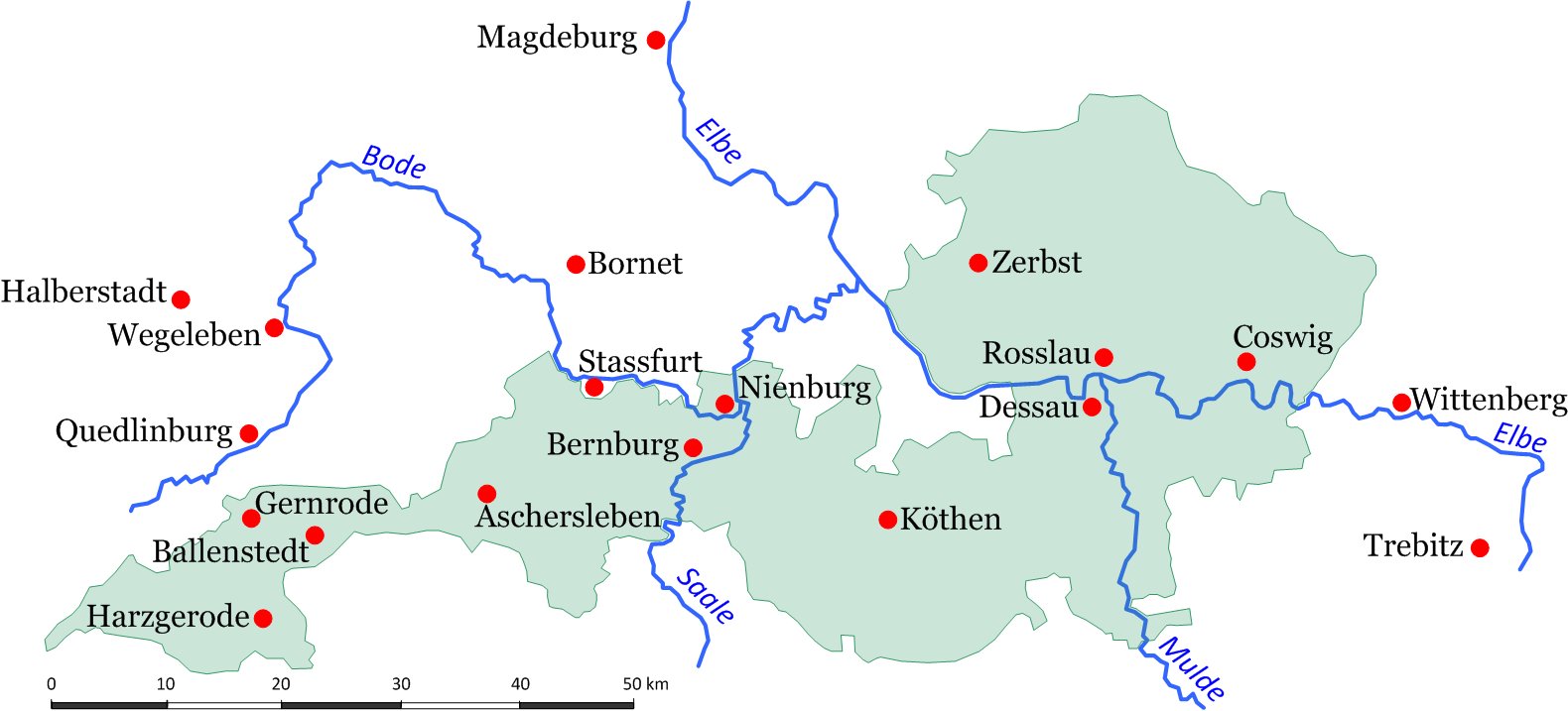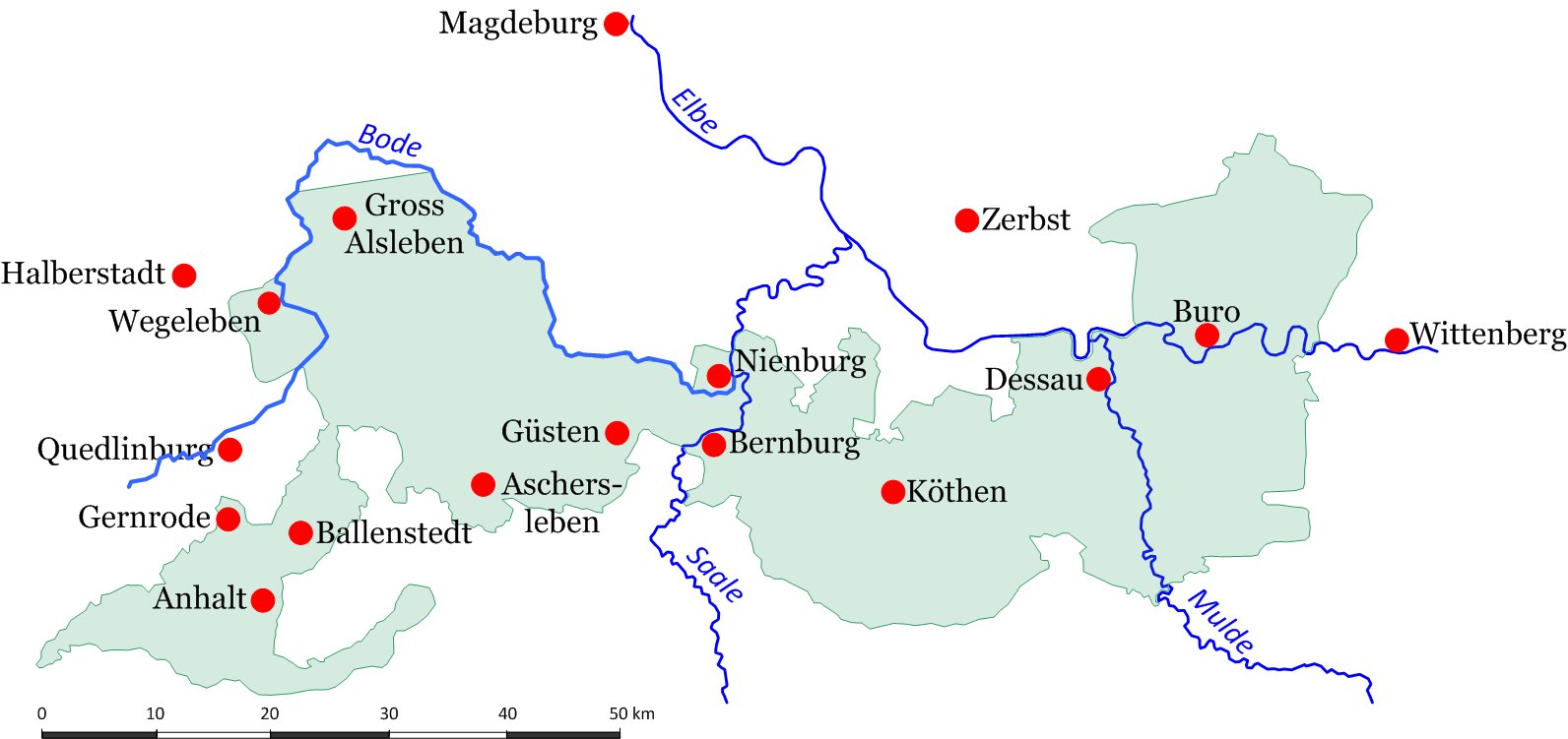 Underlagen till Anhalts städer och utbredningsområde är hämtade från