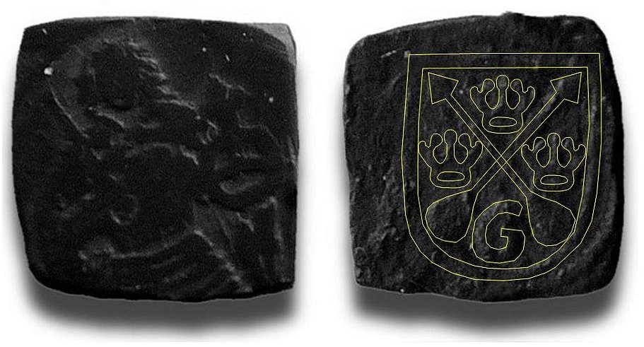 Förtydligande av frånsidans prägling har gjorts av författaren.