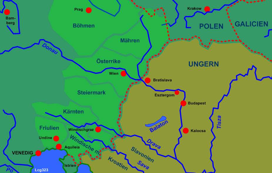 Ungern och Österrike år 1250.