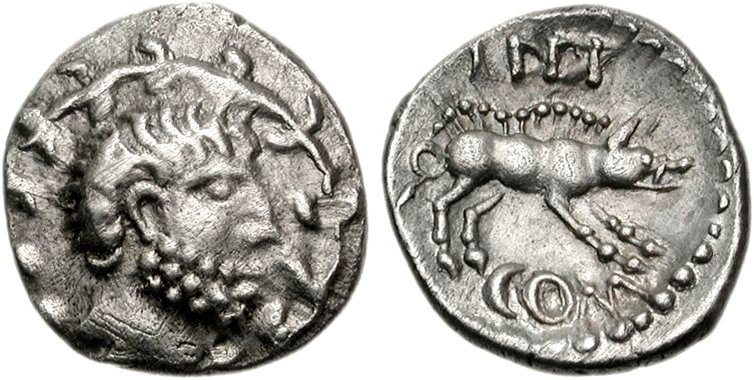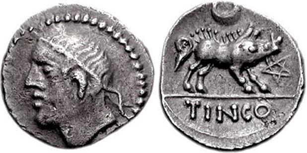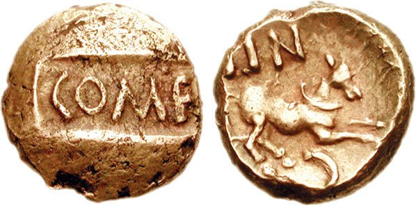 Under piggsvinet texten COM, dvs kung Commius rike.
