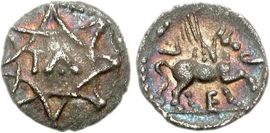 AV 1/4 statér ca 20 f.v.t. − 1 e.v.t. kung Eppilus.