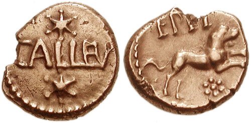 *) Den mäktige Tasciovanus var kung över riket Catuvellauni under åren 25-10 f.v.t.