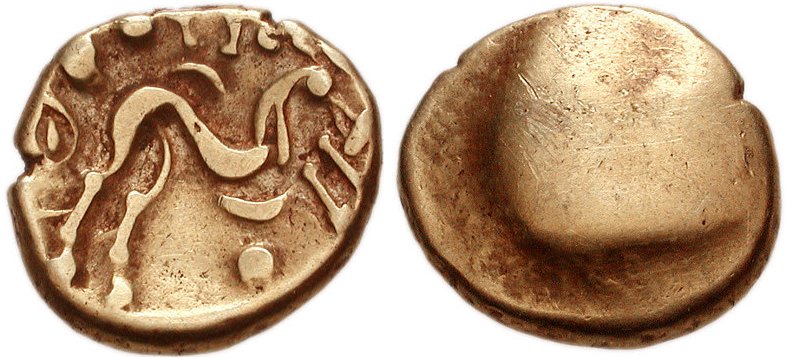 Nedanstående guldmynt är exempel på myntfynd från yngre järnåldern i England. Myntet har sitt ursprung på kontinenten och är präglat av ett folk som kallade sig Ambiani. Detta folk hade sin hemvist där floden Somme har sitt utlopp i Engelska kanalen.