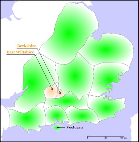 | Atrebates & Regni | North Hampshire och West Sussex | Commius ca 50-25 f.v.t. Tincomarus ca 25 f.v.t.-10 e.v.t. Eppilus ca 20 f.v.t-1 e.v.t. Verica ca 10-40 e.v.t. Epaticcus ca 20-40 e.v.t *) |