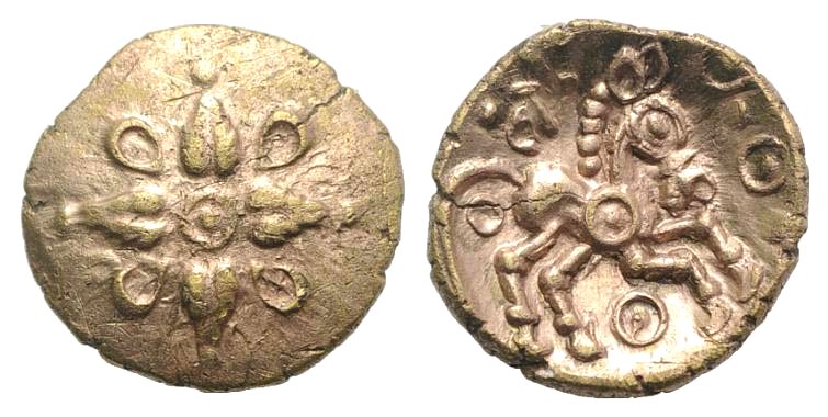 Under hästen står det CUNO (dvs Cunobelinus).