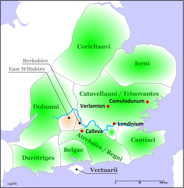 - Calleva, dagens Silchester, var huvudstad i Atrebates.