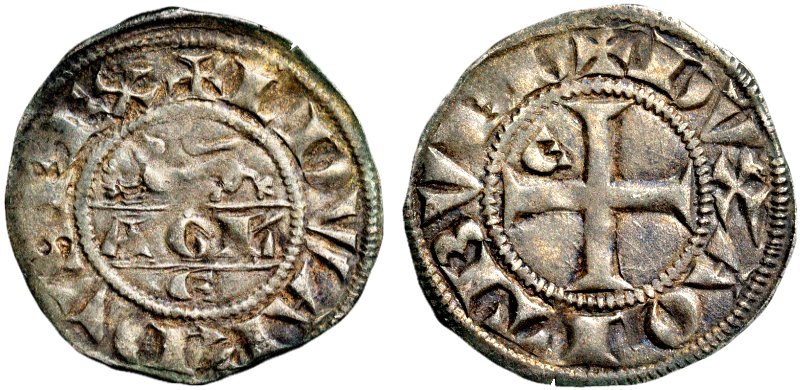Edward insåg att det fanns behov av nya och bättre mynt i Bordeaux, så han skickade den engelske myntmästaren William de Turnemire till Bordeaux år 1285 för att få igång verksamheten i myntverket. År 1291 kom myntningen igång, men avbröts 1294 eftersom fransmännen hade ockuperat Bordeaux och konfiskerat myntverket. År 1303 blev det fred mellan England och Frankrike och engelsmännen återfick Bordeaux. Verksamheten vid myntverket återupptogs två år senare. Det mynt som presenteras nedan är slaget under perioden 1291-94.