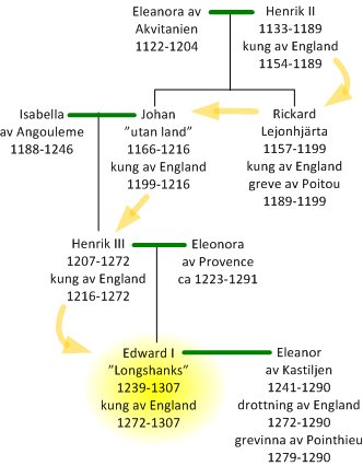 Edward I var kung av England under åren 1271-1307 och han kom att kallas Edward Longshanks, dvs Edward Långskånk. Edward ärvde tronen av sin far, Henrik III. Englands besittningar i Frankrike hade vid den tidpunkten inskränkt sig till Calais och södra delen av Akvitanien. Bordeaux var centralort i Akvitanien på grund av hamnen och transporterna av vin från Bordeaux till England.