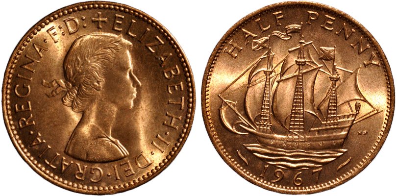 Halfpenny 1967, Elisabeth II, Storbritannien