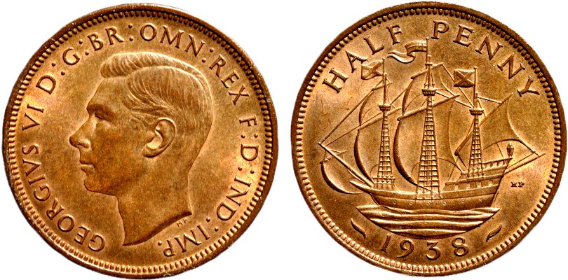 Halfpenny 1938, George VI, Storbritannien