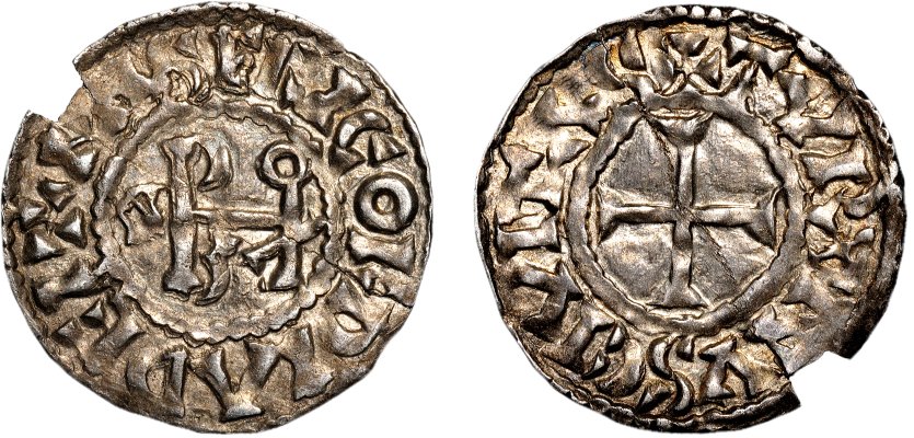 De två mynttyper som här presenteras har olika monogram. Det finns även en tredje mynttyp, Odo rex Francorum, och den saknar monogram. Det är ett kors inom den inre pärlringen.
