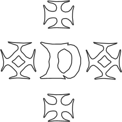 Mittenraden ska tydas ODO. Över och under finns kors. |