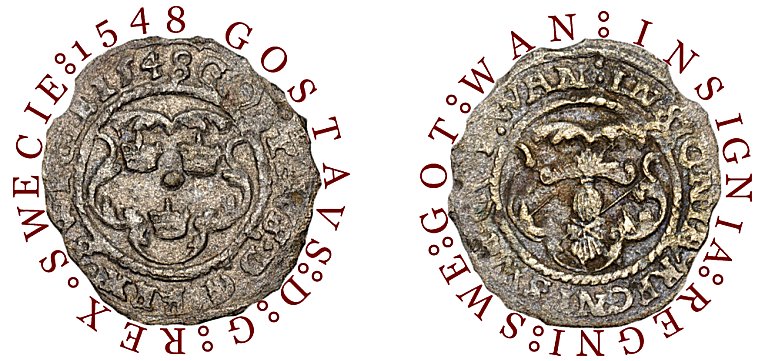 Omskrift åts: GOSTAVS D G REX SWECIE 1548