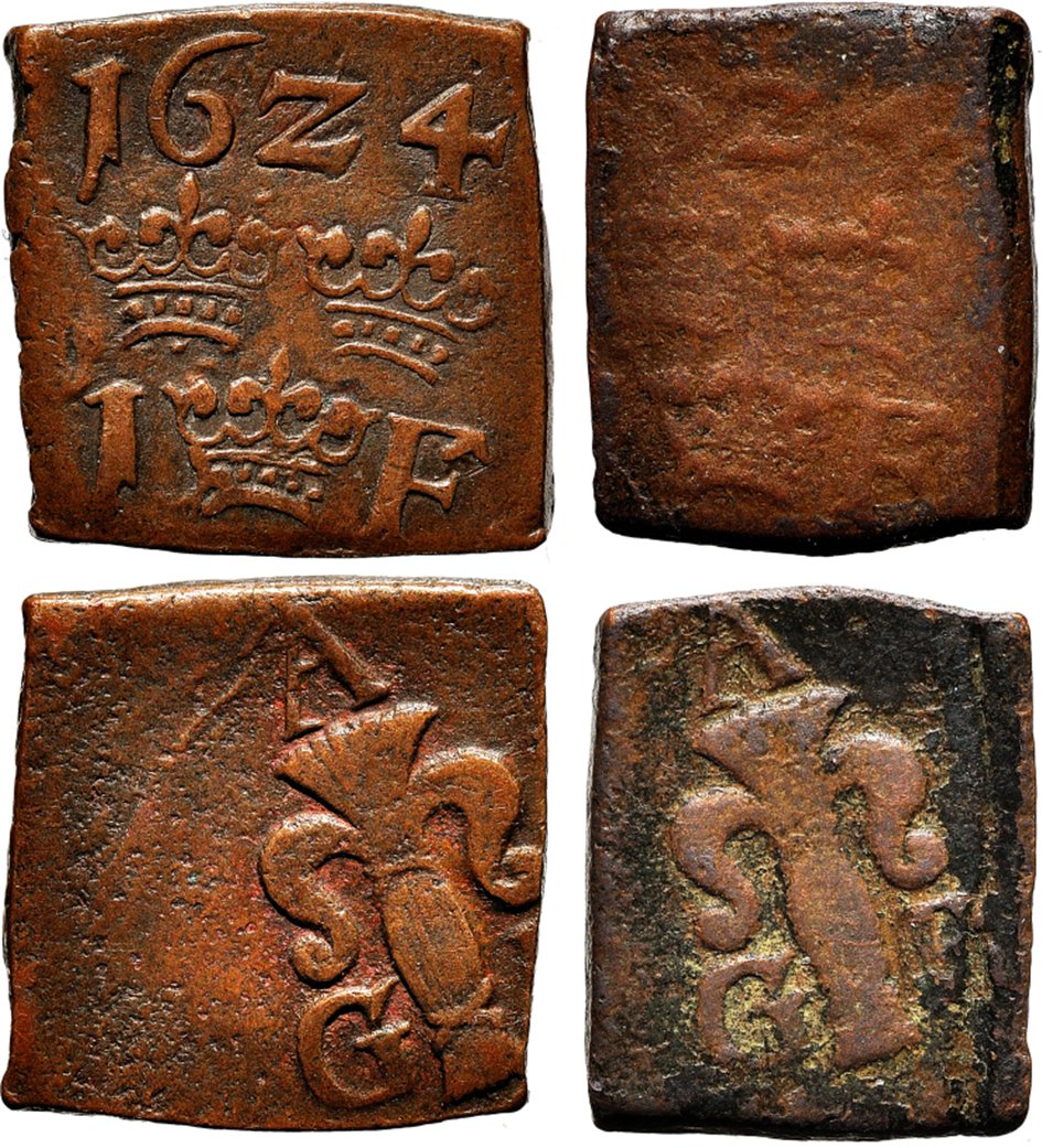 Den gängse uppfattningen är att Gustav II Adolfs kopparfyrkar 1624 finns i tre utföranden, och det som skiljer mynten åt är kronornas utformning. På en myntauktion 2008[1] såldes en kopparfyrk 1624 i enastående gott skick vilket fick priset att dra iväg. Myntet bytte sedan ägare i omgångar för att häromdagen komma under granskning på webbredaktionen tillsammans med ett ytterligare exemplar − slitet men stämpelidentiskt med det första exemplaret.