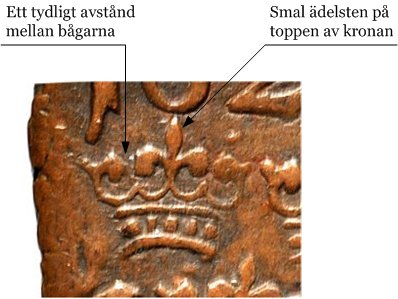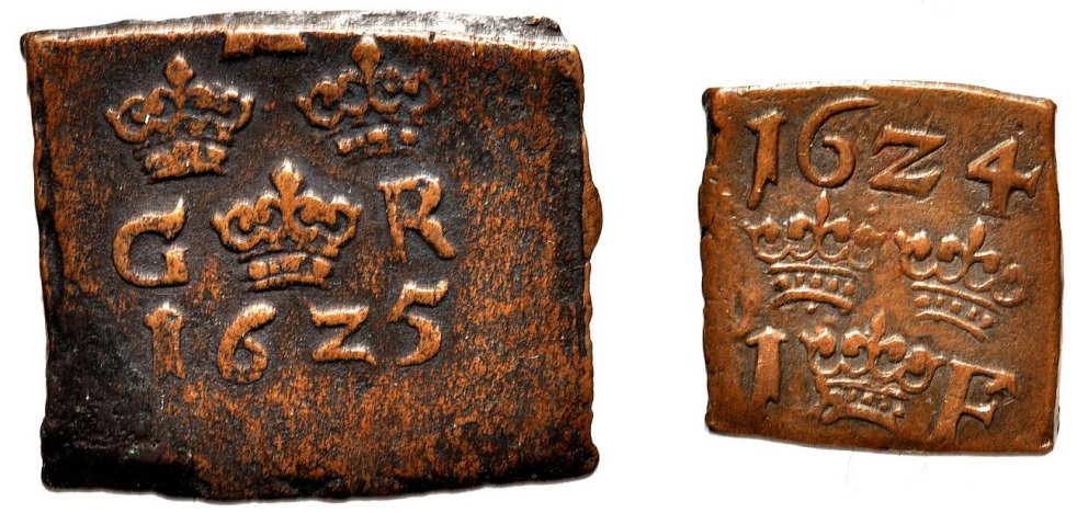 En viss förvåning infanns sig då vi tittade lite närmare på mynten. Det gick inte att sortera in dem bland någon av de tre utföranden som hittills är kända för kopparfyrkar 1624. Kronorna är av en hittills okänd typ. Årtalet har en "kalligrafisk" utformning och bokstaven F har en uppseendeväckande sirlighet.