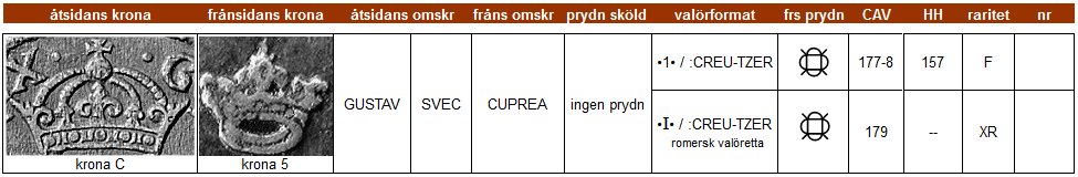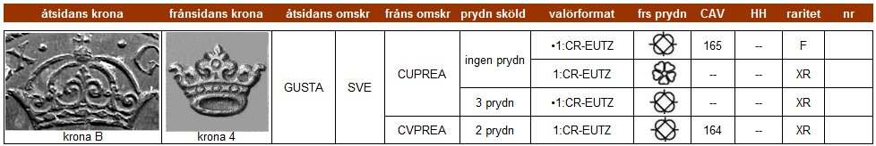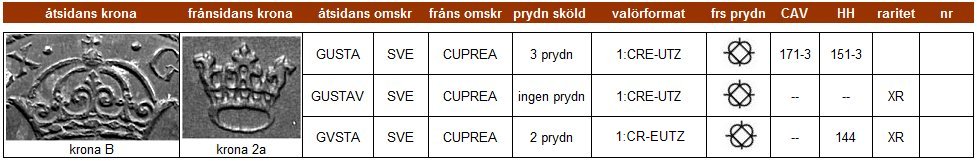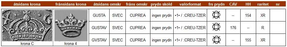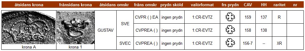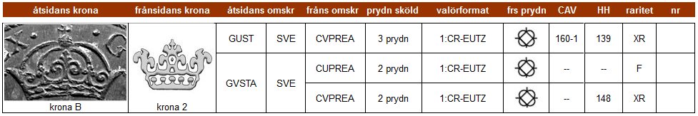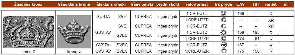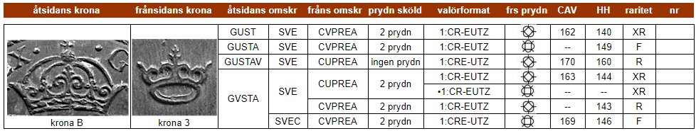 | Klicka på ett KRE-nr i tabellen för att se myntfoto. |