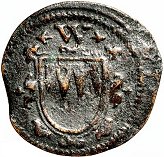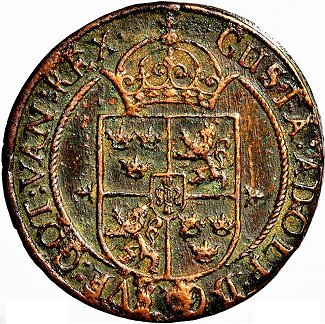 | Würzburgkreutzer, 1622 17 mm 1,10 g | Gust II Adolfs kreutzer, 1632 34 mm 21,2 g |