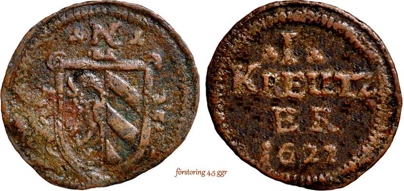 I början av 1600-talet präglades kreutzer i Tyskland även som kopparmynt. Se följande bilder.