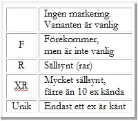 Gustav II Adolfs kreutzermynt är idag generellt mer sällsynta än t ex hans kopparören. Graden av sällsynthet för mynten framgår av vidstående tabell. |