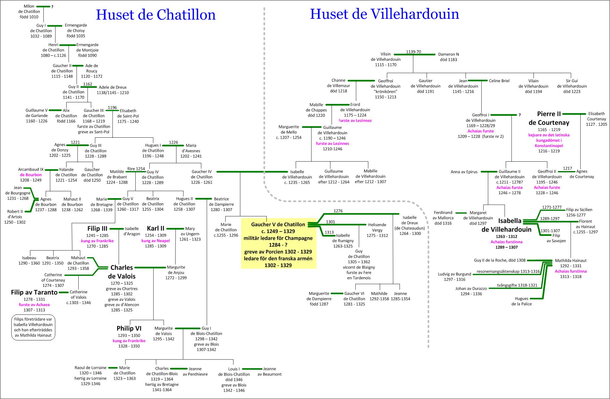 De bägge släkterna de Chatillon och de Villehardouin förenades i Gaucher V de Chatillon