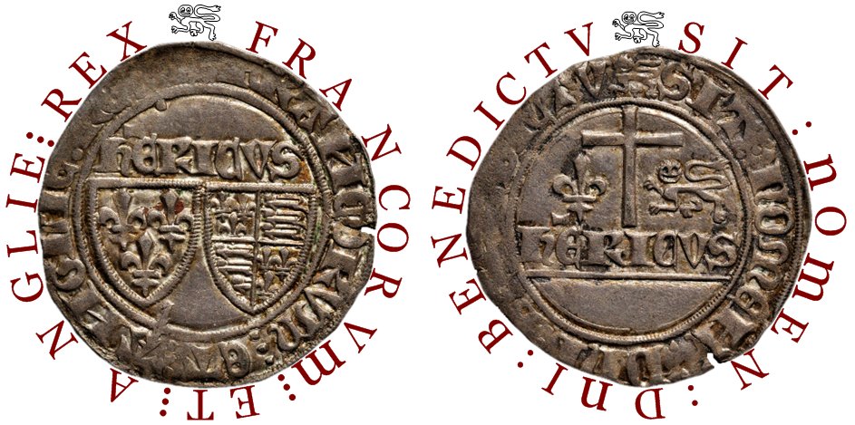Någon gång under åren 1433-44 lät Henrik VI prägla ett "propagandamynt" i den franska staden Rouen som visade att han var kung över både England och Frankrike. Henrik hade kommit att styra England aktivt från år 1437, så man kan tänka sig att myntet tillkom i den vevan. På myntet finns något som antyder att det är slaget någon gång under åren 1433-44.