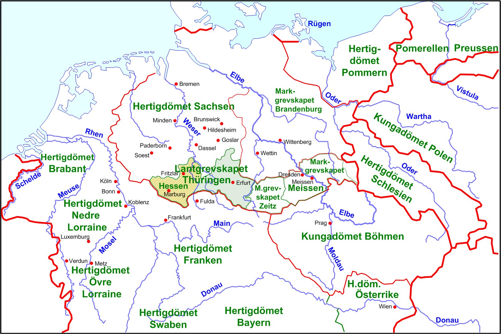 lantgrevskapet Thüringen som var en del av det tyska hertigdömet Sachsen.