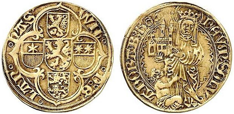 På mynt där heliga Elisabeth finns avbildad med en kyrkomodell i famnen, stöter vi ofta på texten GLORIA REI PVBLICE i omskriften, vilket möjligen kan översättas med i berömliga gärningar regerande.