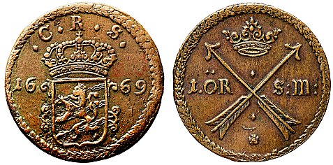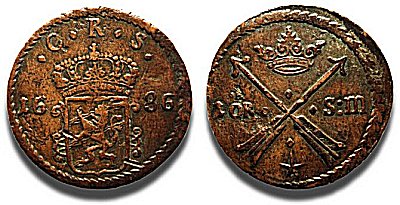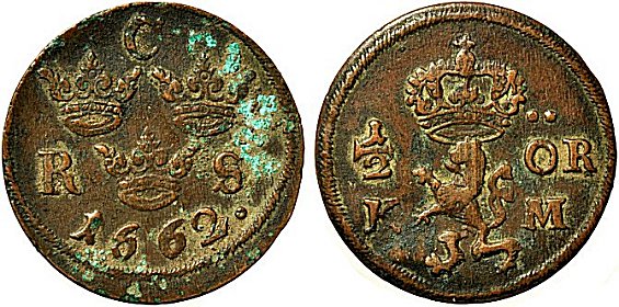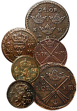| Under åren 1661 - 1686 präglades kopparmynt i sex valörer. |