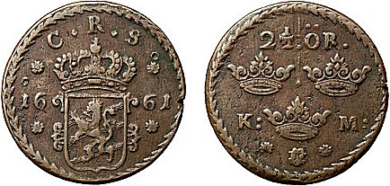 Juvelen bland Karl XI:s kopparmynt är 2½ öre KM från år 1661. Enstaka exemplar saluförs ungefär en gång per år och myntet är ett "måste" för varje kopparsamlare. I de fall konserveringsgraden är god drar priset iväg.
