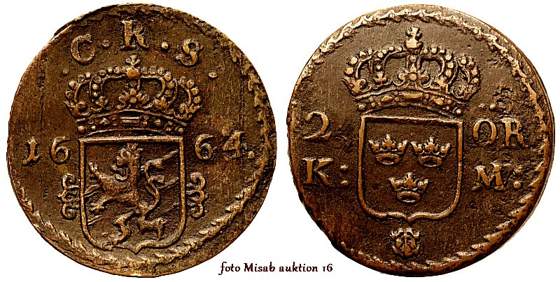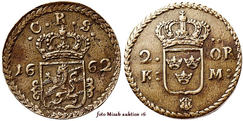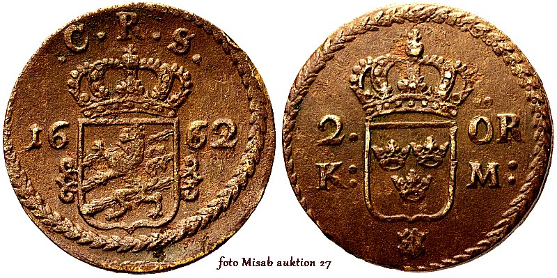 Svensk mynthistoria är komplicerad under åren 1624 − 1776. Vi hade både kopparmynträkning och silvermynträkning och relationen dem emellan varierade med tiden. Från år 1644 gick det 2½ öre KM på 1 öre SM och från år 1665 gick det 3 öre KM på 1 öre SM och dessa förändringar avspeglar sig i myntens vikt och utformning, vilket gör att många hittills icke publicerade detaljer finns att upptäcka.