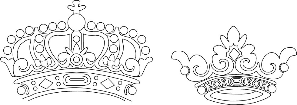 Kungakronans detaljer på kronbåge 3 är ofta svåra att urskilja.