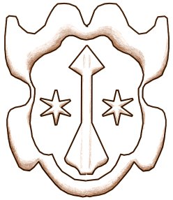 Åtsidans sköld (götaskölden) har voluter på sidorna. Vanligen finns det voluter både upptill och nedtill, men ibland saknas de övre voluterna.