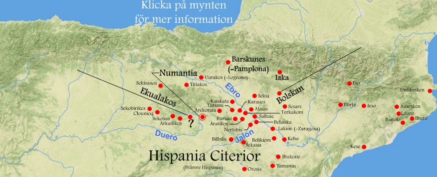 De första keltiberiska mynten slogs på 200-talet fvt och på 100-talet fvt blev det tämligt vanligt med keltiberiska mynt i handeln. Standardverket för dessa mynt är F A Burgos, La Moneda Hispanica från år 2008.